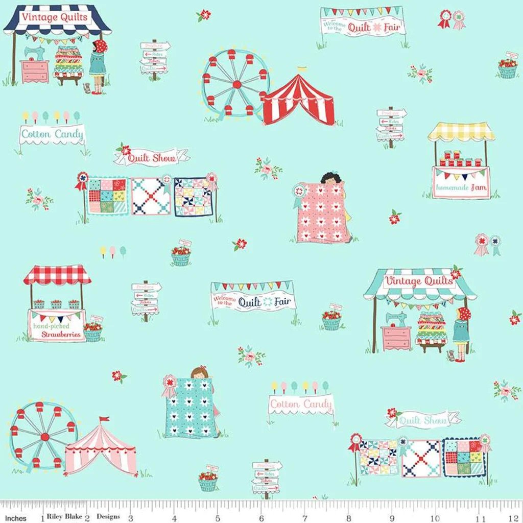 Aqua Main yardage from the Quilt Fair collection. Designed by Tasha Noel for Riley Blake Designs.
